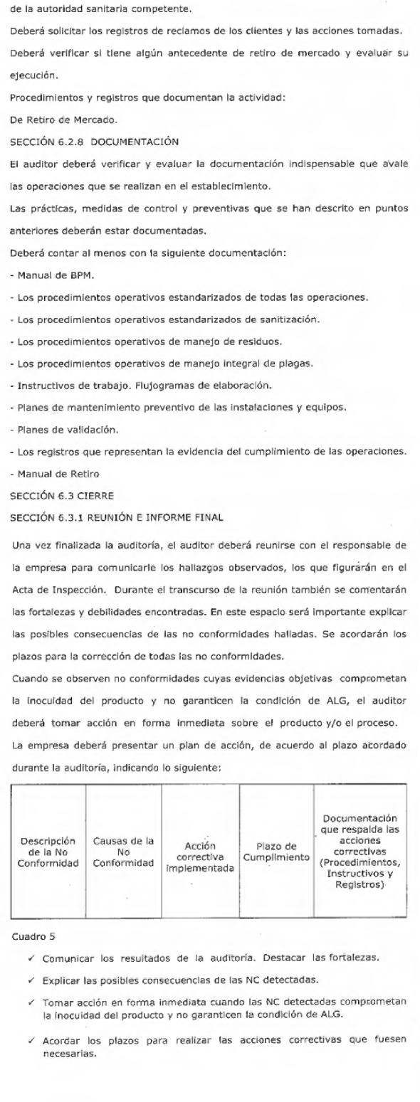 para la Realización de Auditorías a Establecimientos Elaboradores de