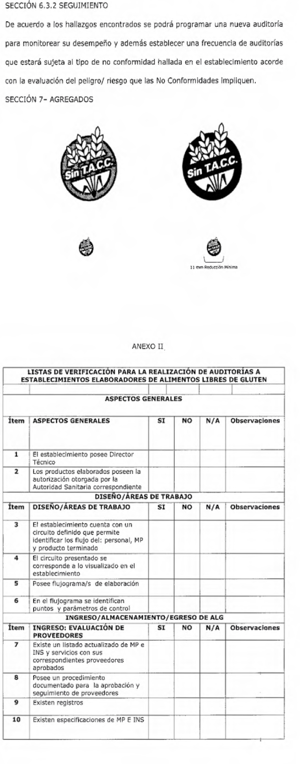 Alimentos Libres de Gluten” que como Anexo II forma parte de la