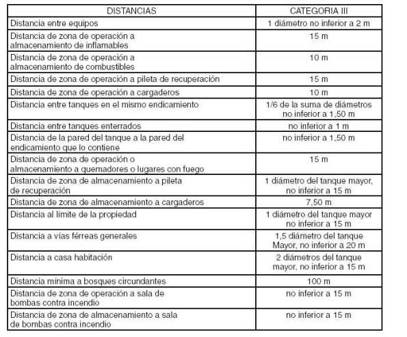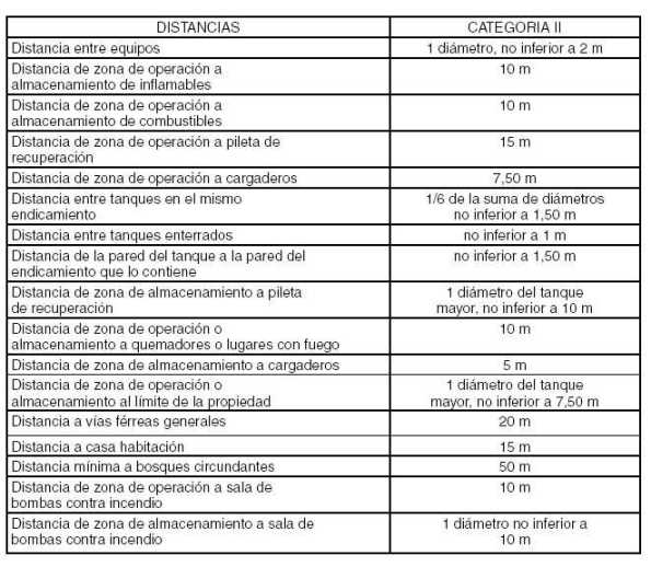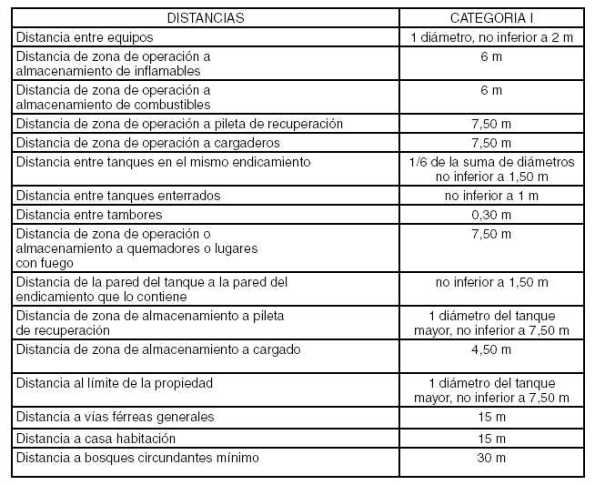 las distancias de seguridad, los equipos, los tanques de almacenamiento,