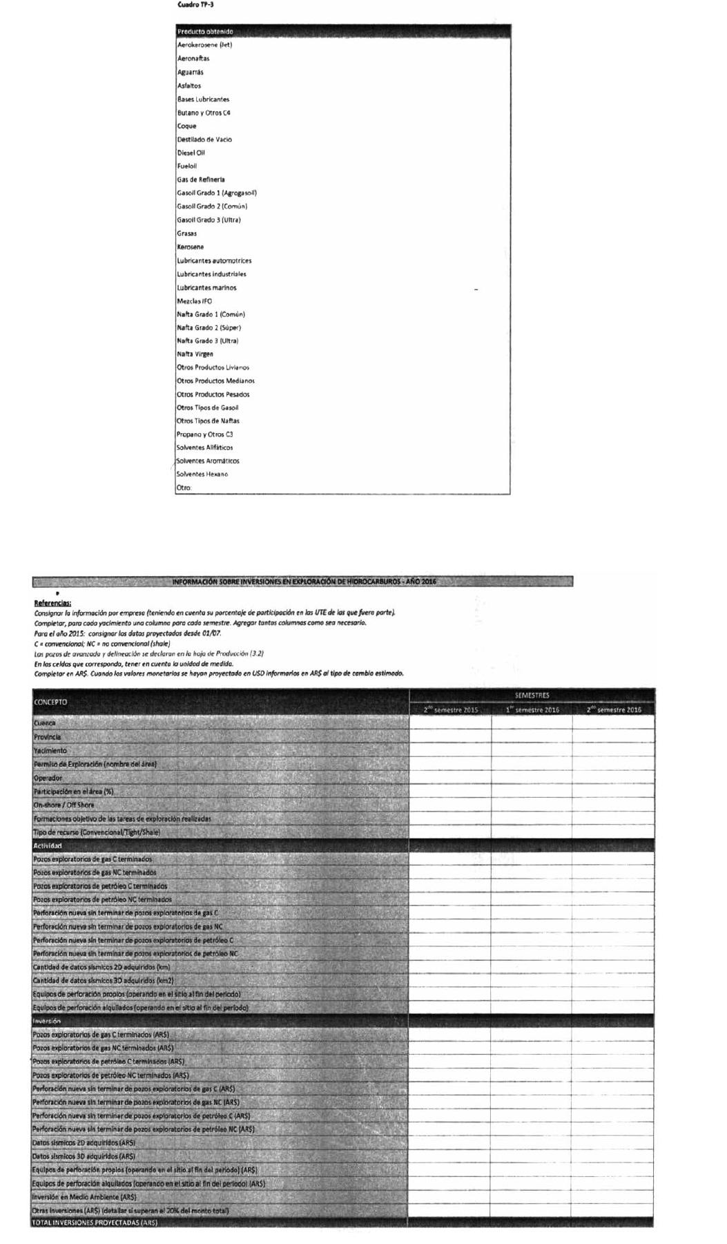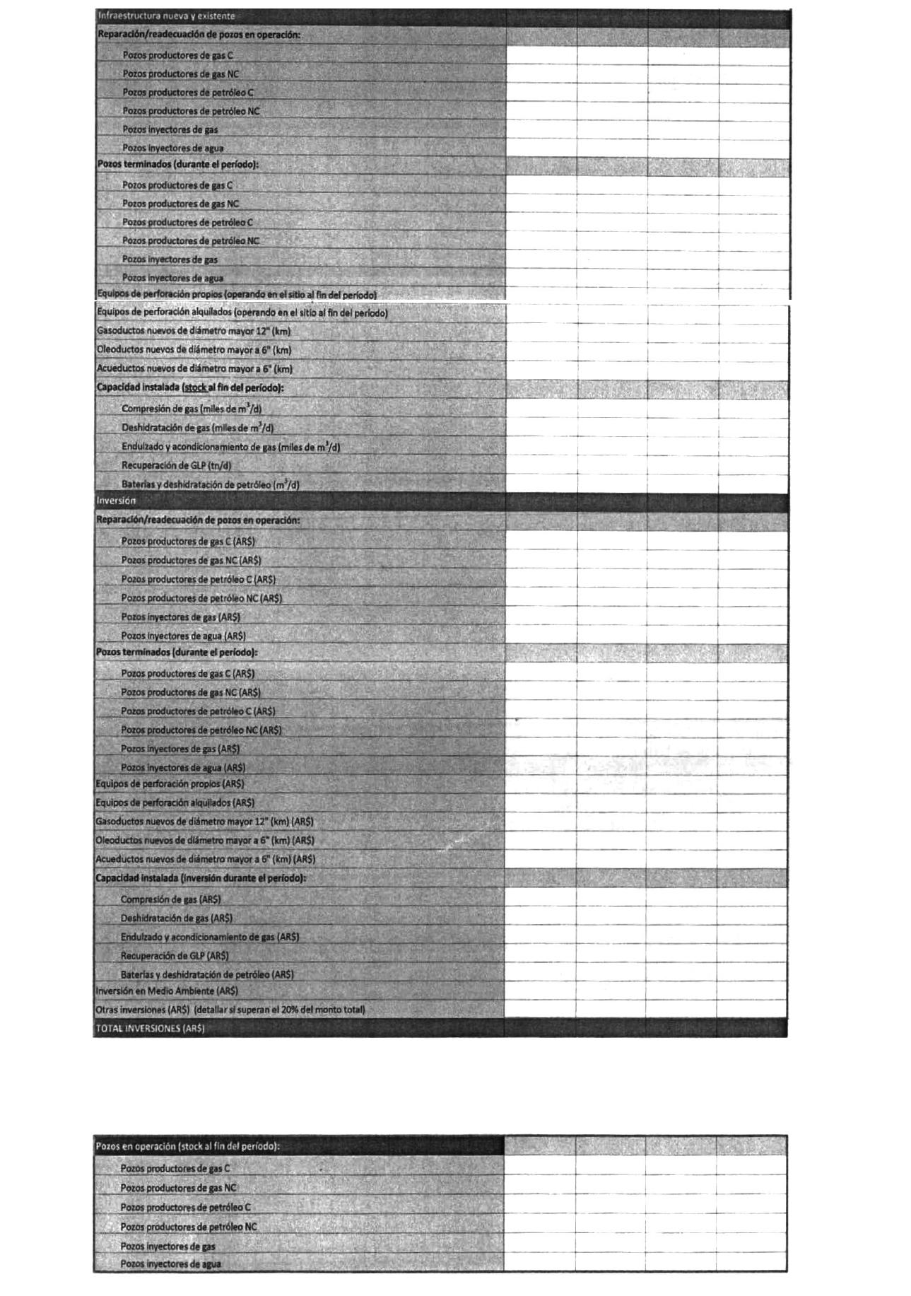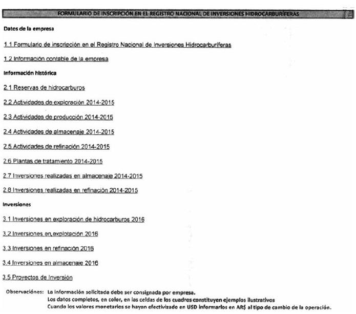 Registro Nacional de Inversiones Hidrocarburíferas que como Anexo I