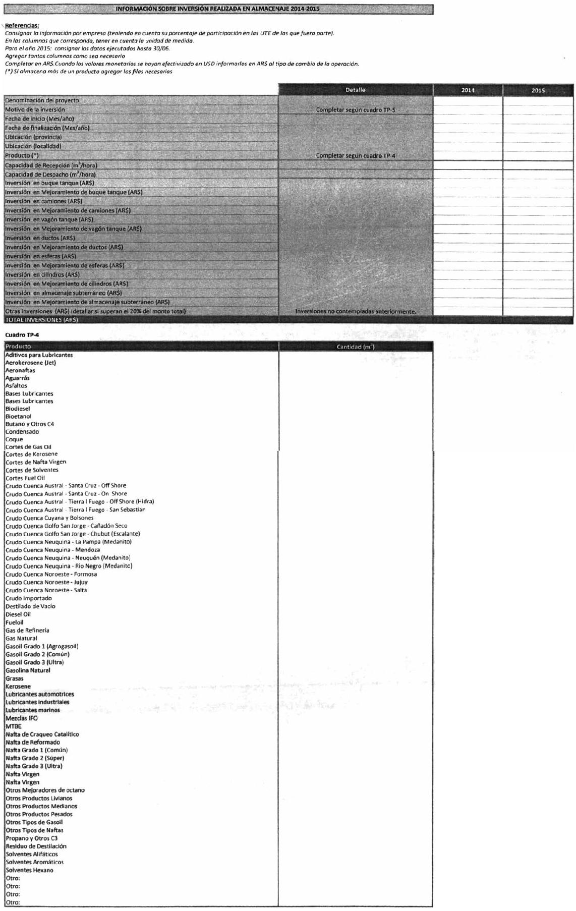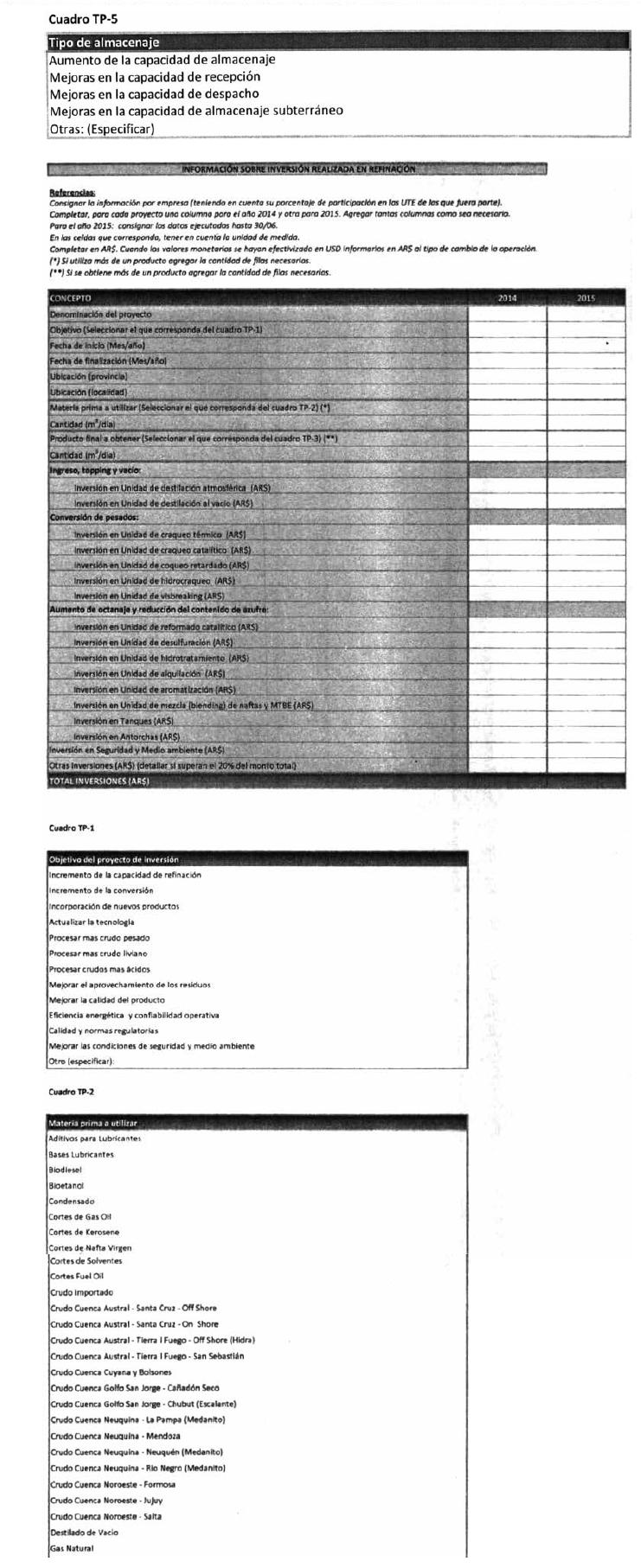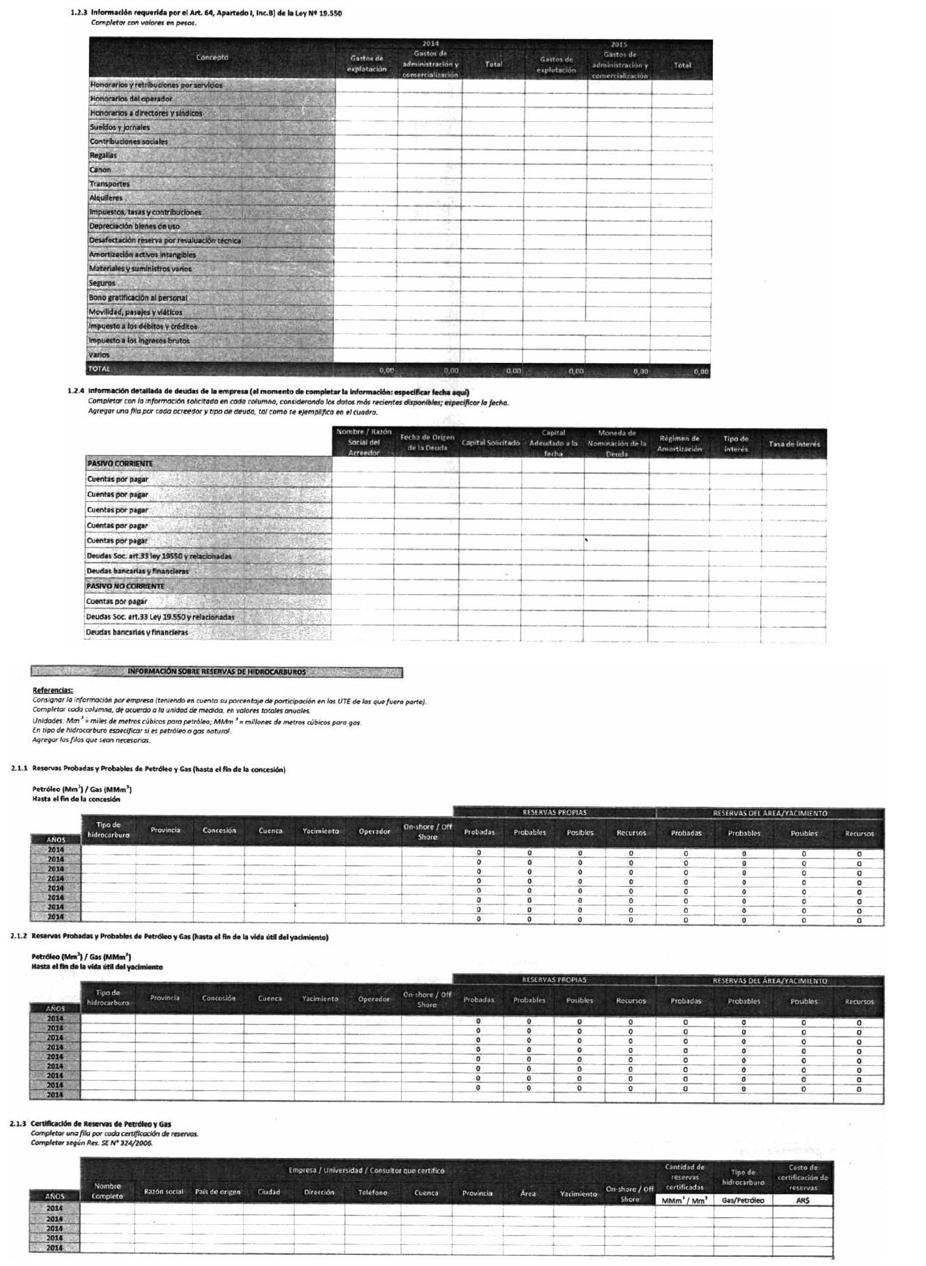 Registro Nacional de Inversiones Hidrocarburíferas que como Anexo I