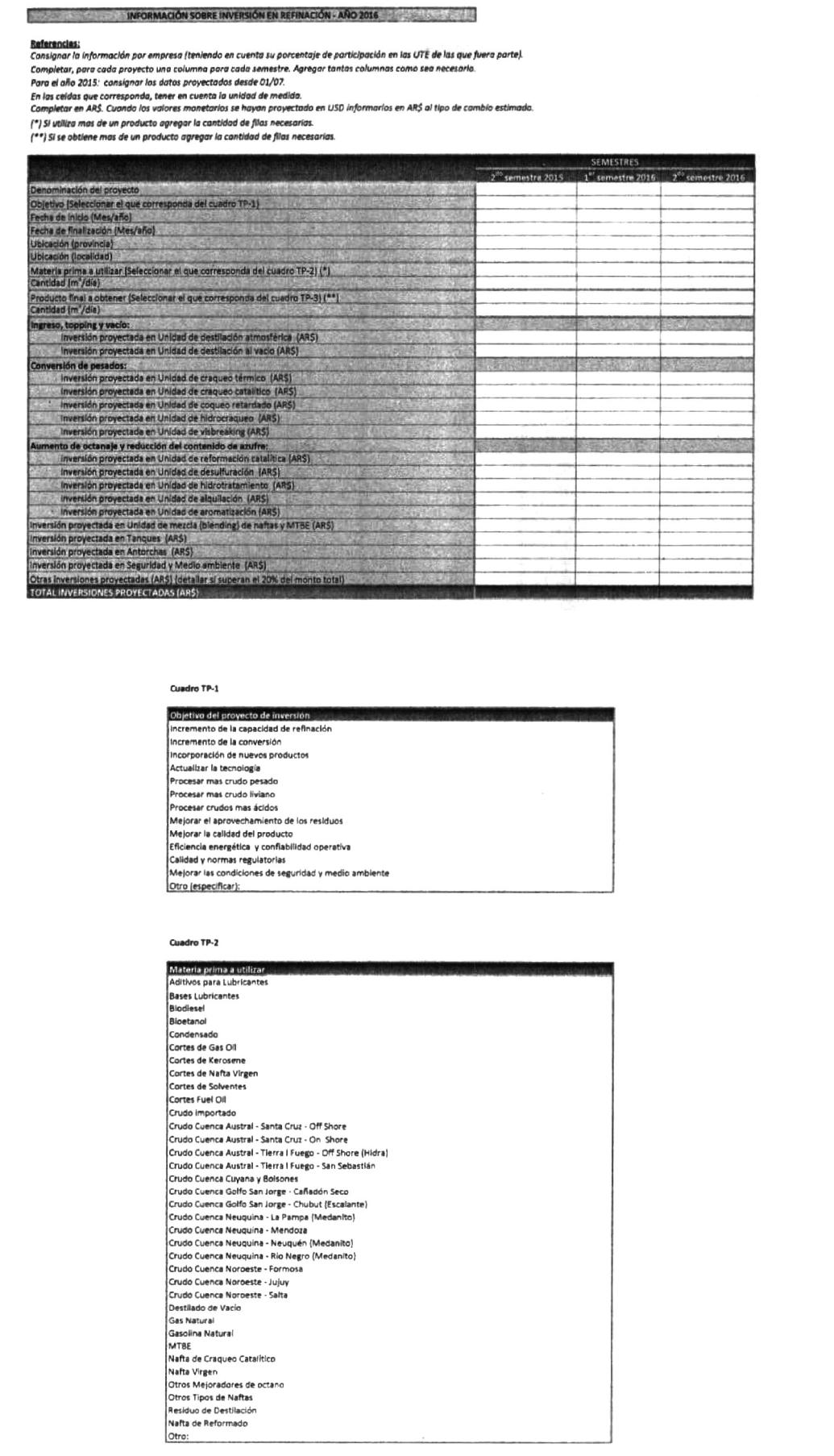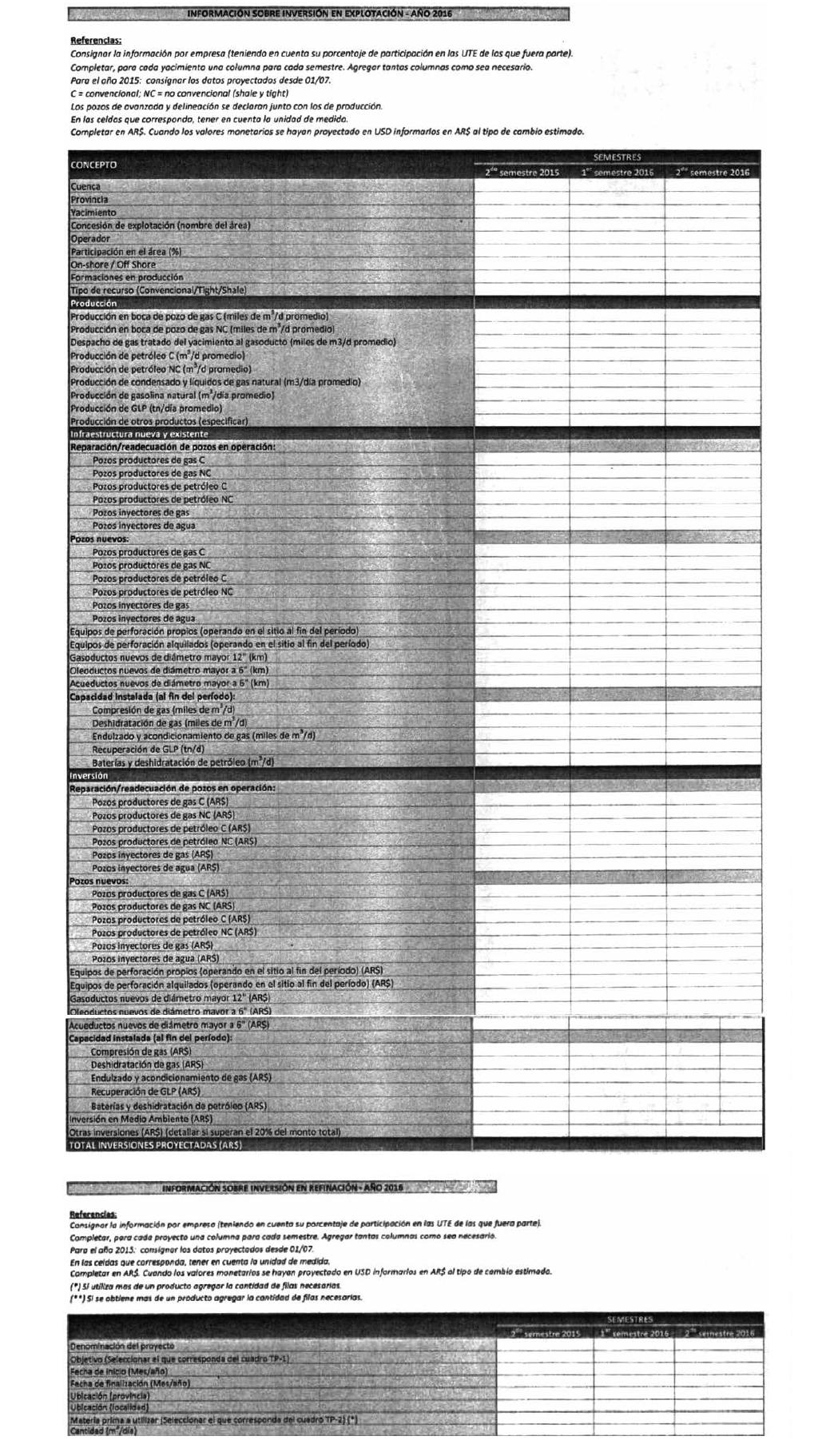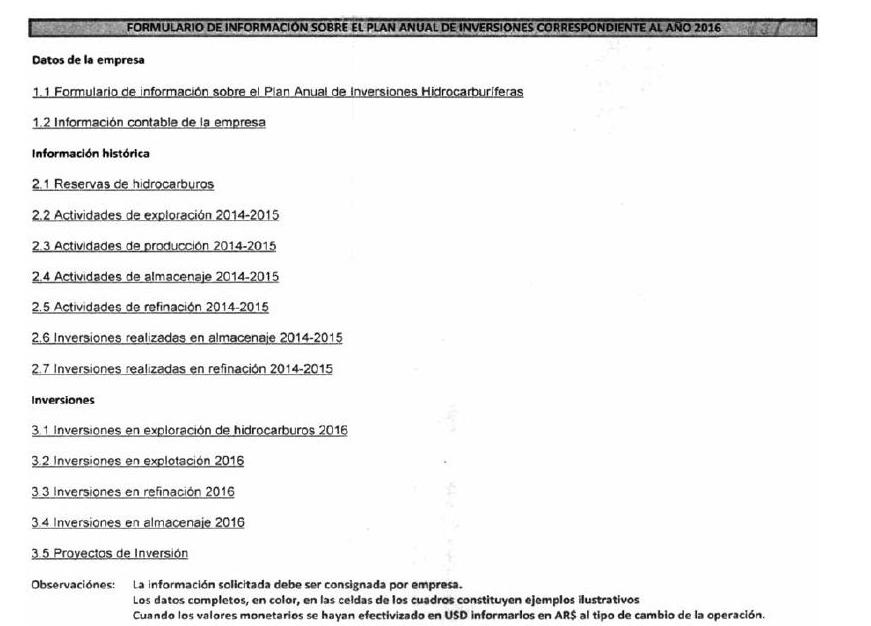 Plan Nacional de Inversiones Hidrocarburíferas aprobó el Formulario