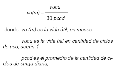 Indicar la vida útil en función de ciclos de uso en las