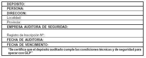 DE APTITUD DE DEPOSITO PARA GAS LICUADO DE PETROLEO ENVASADO