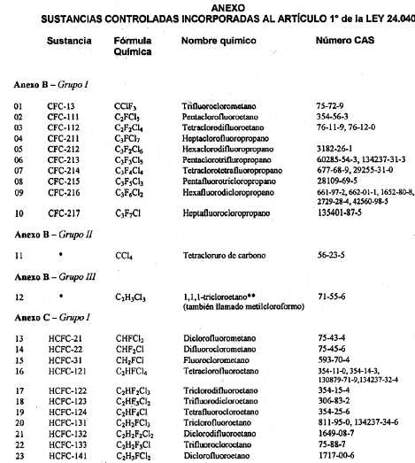 incluidos en el Anexo "A" del PROTOCOLO DE MONTREAL, que
