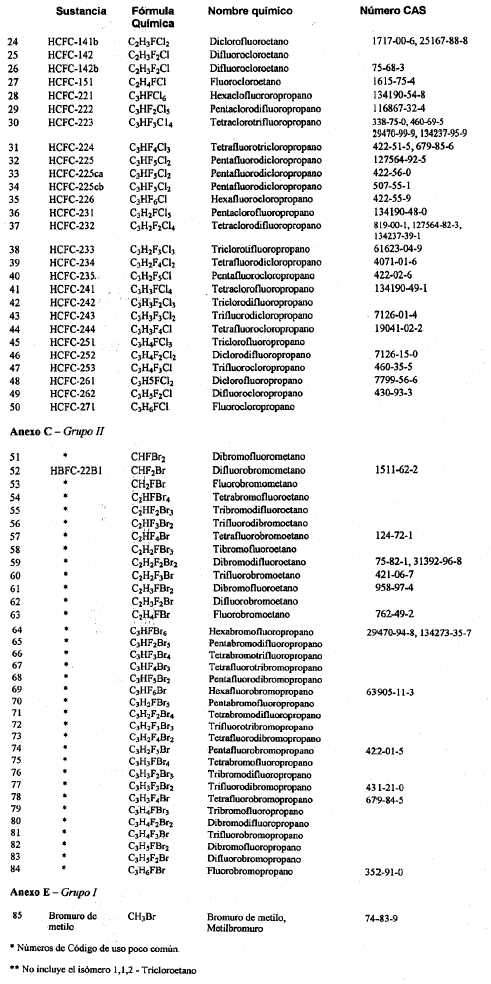 incluidos en los Anexos B, C y E del Protocolo de Montreal relativo