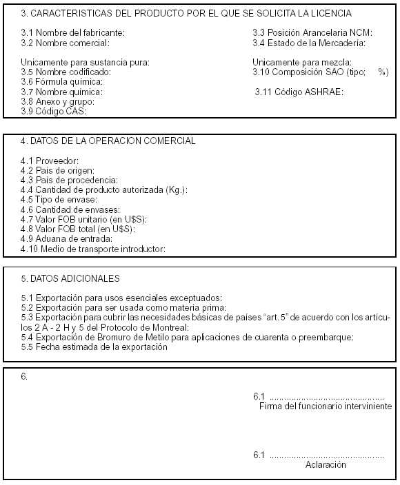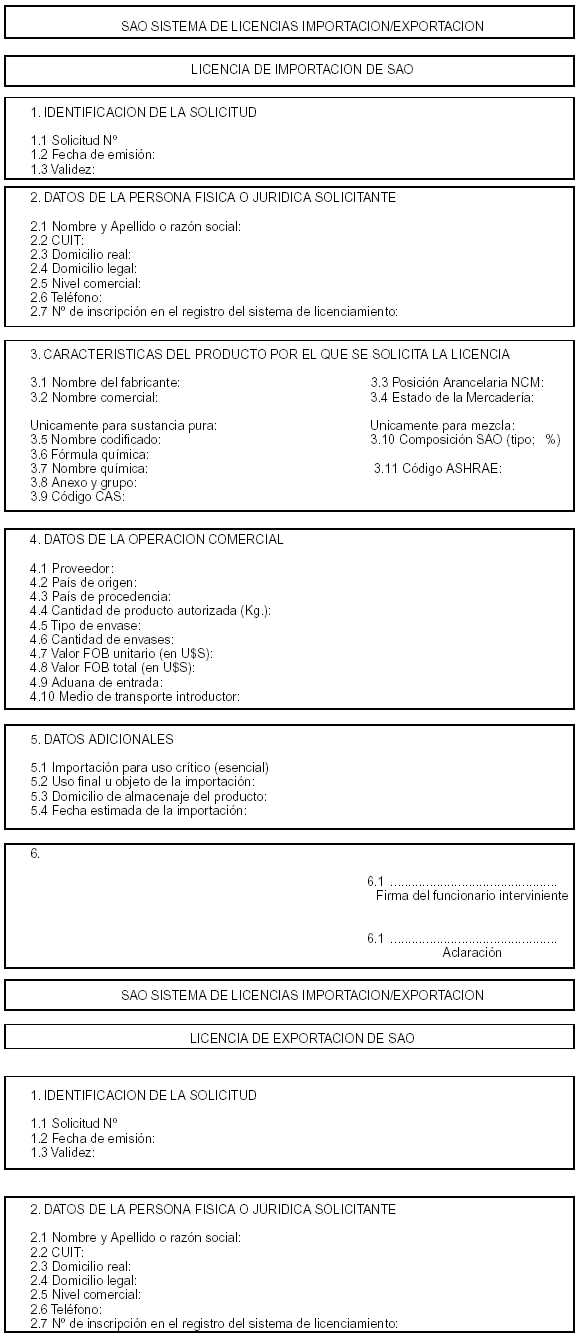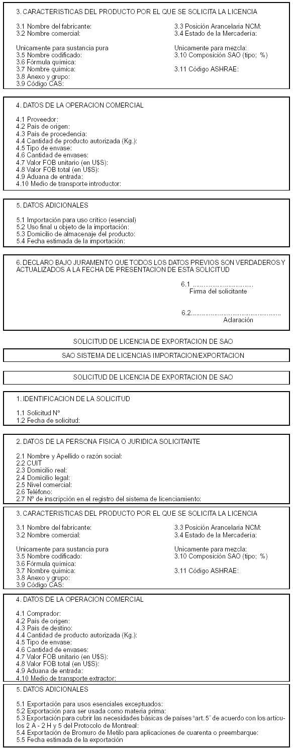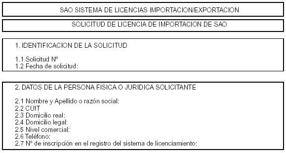 VIII: FORMULARIO DE LICENCIA DE IMPORTACION DE SAO