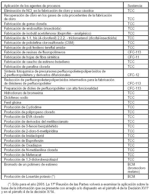 industriales y agrícolas que utilizan sustancias que agotan la capa de ozono