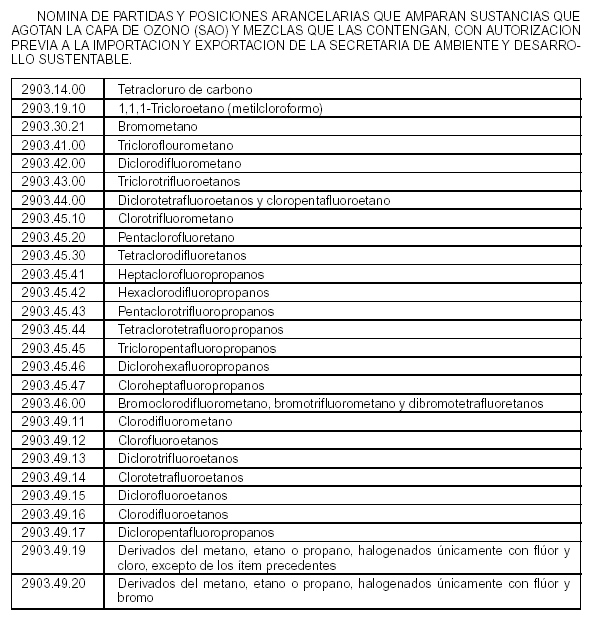 QUE AGOTAN LA CAPA DE OZONO - IMPORTACION/EXPORTACION
