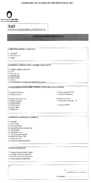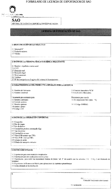 SAO y Formulario de Licencia de Exportación de SAO" a presentar ante