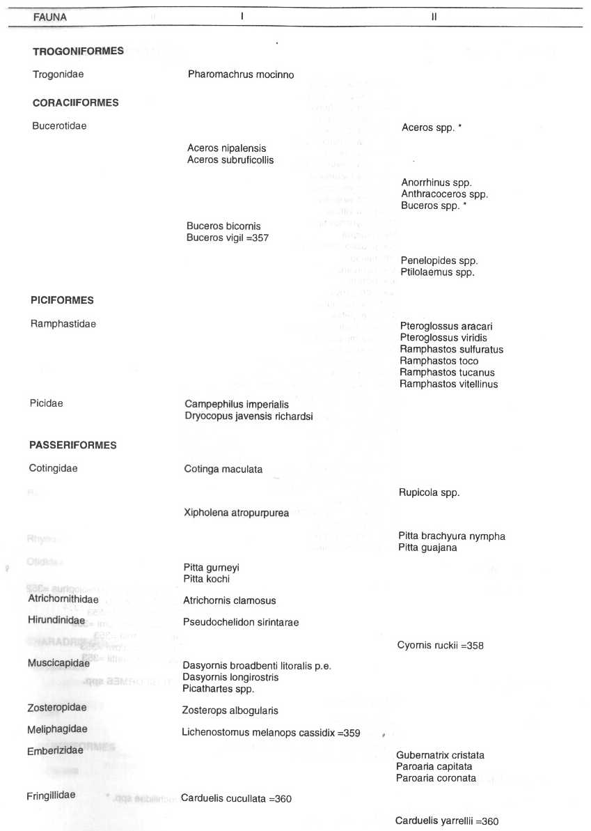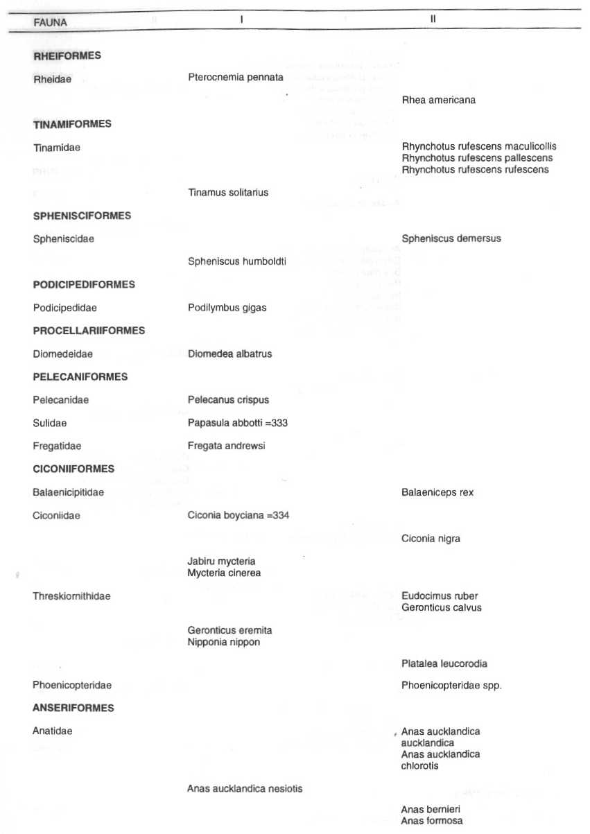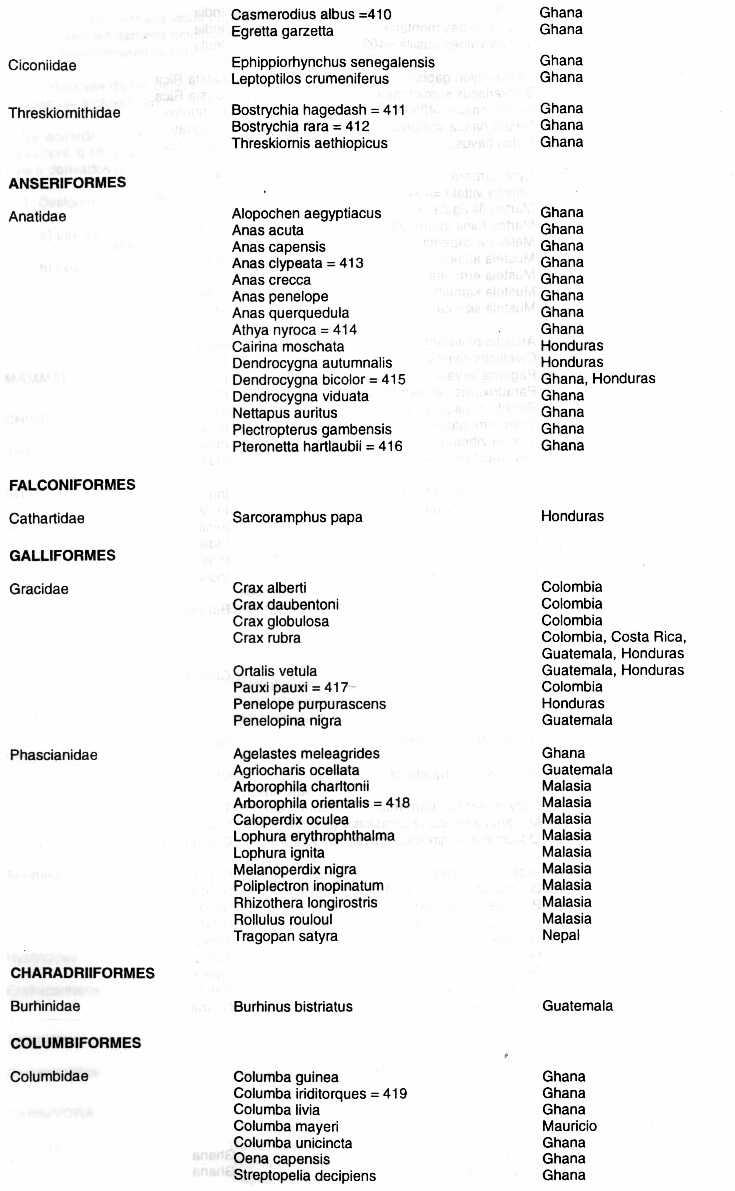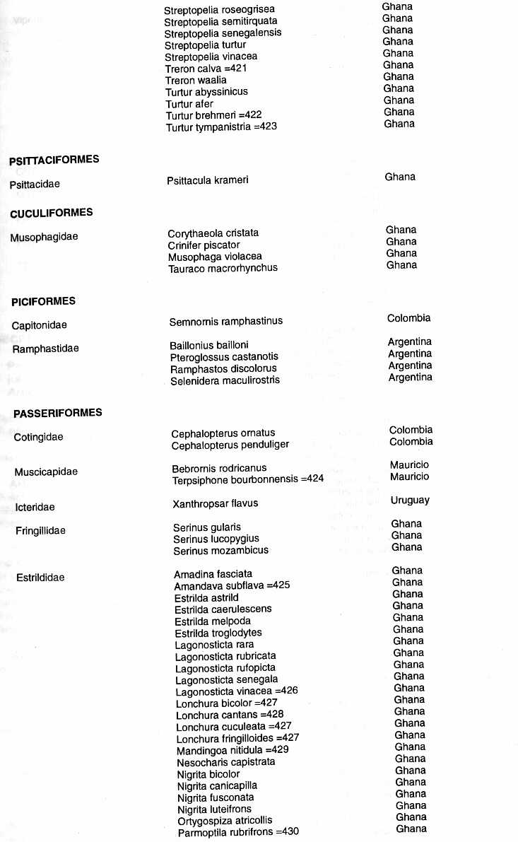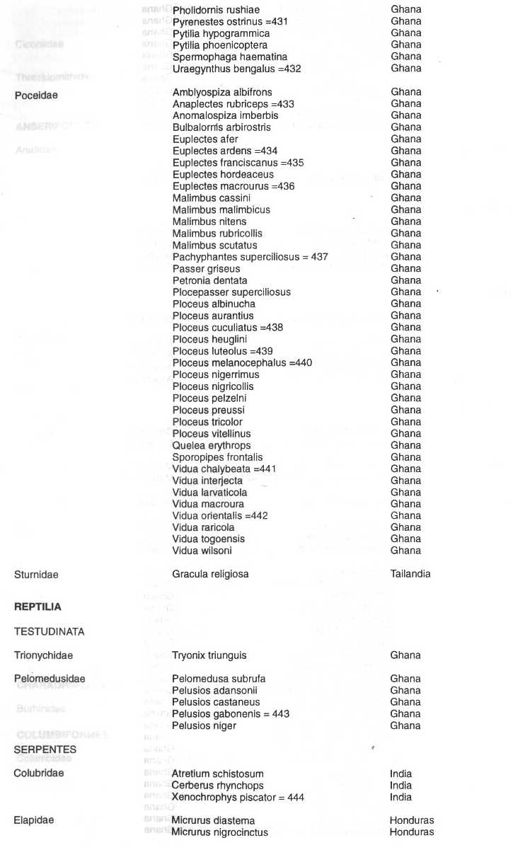 Los nombres de los países colocados junto a los nombres de las especies son