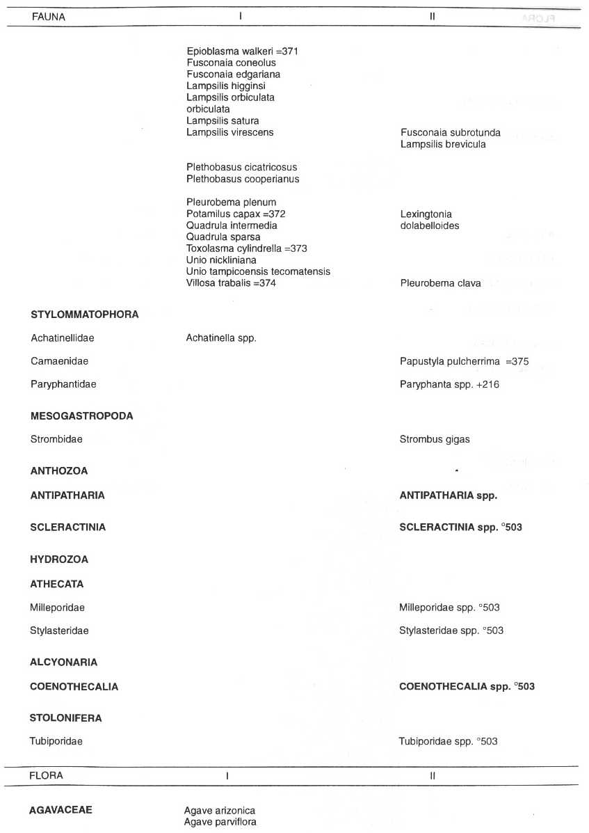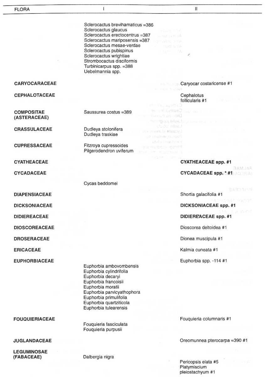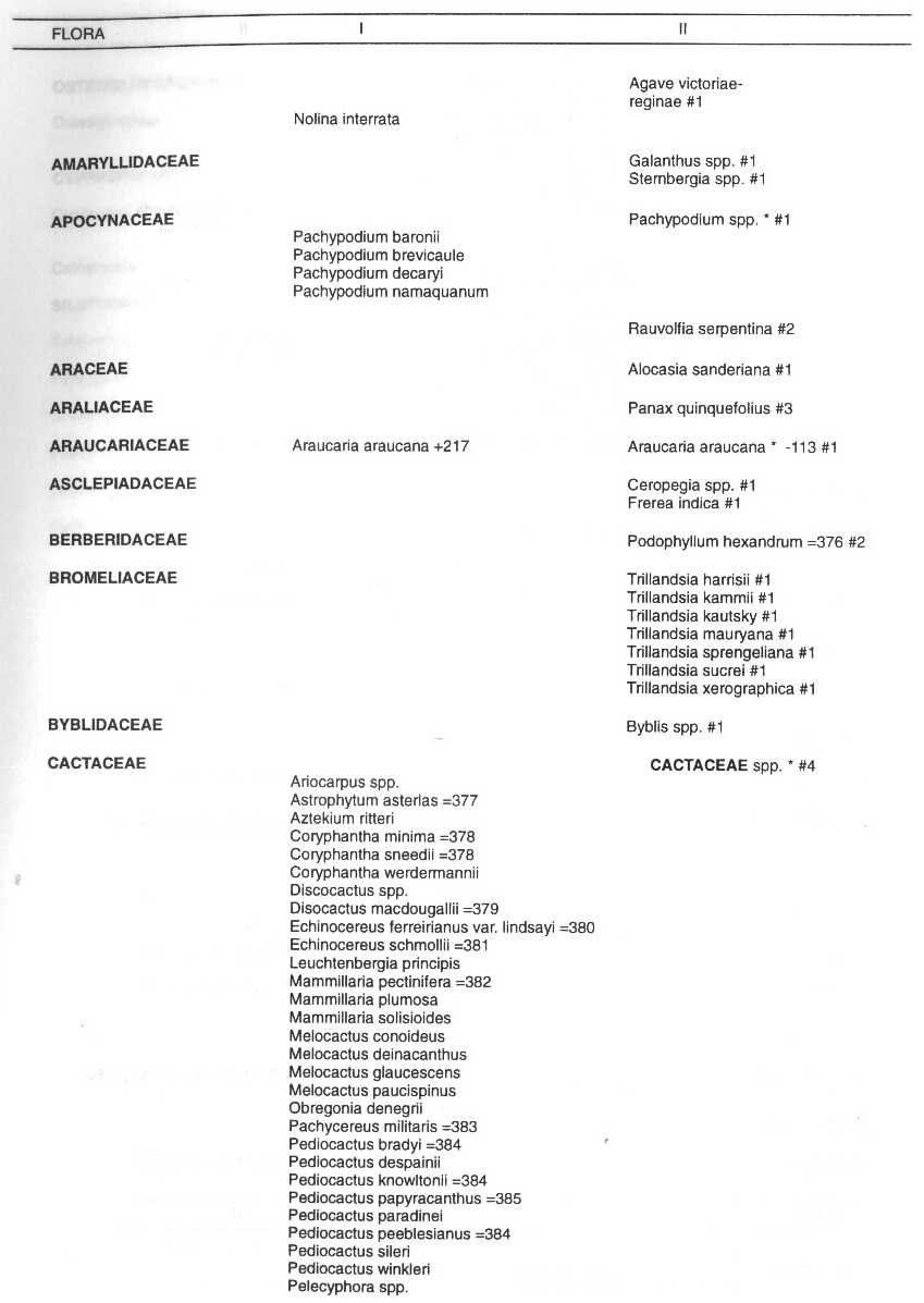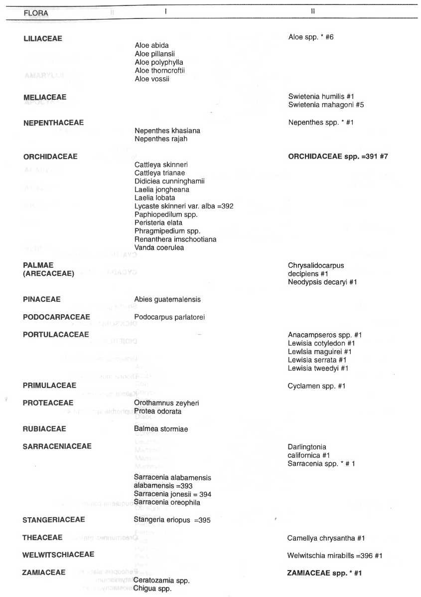 Flora Silvestres, y que se hallan incluidas en los Apéndices I, II y III de