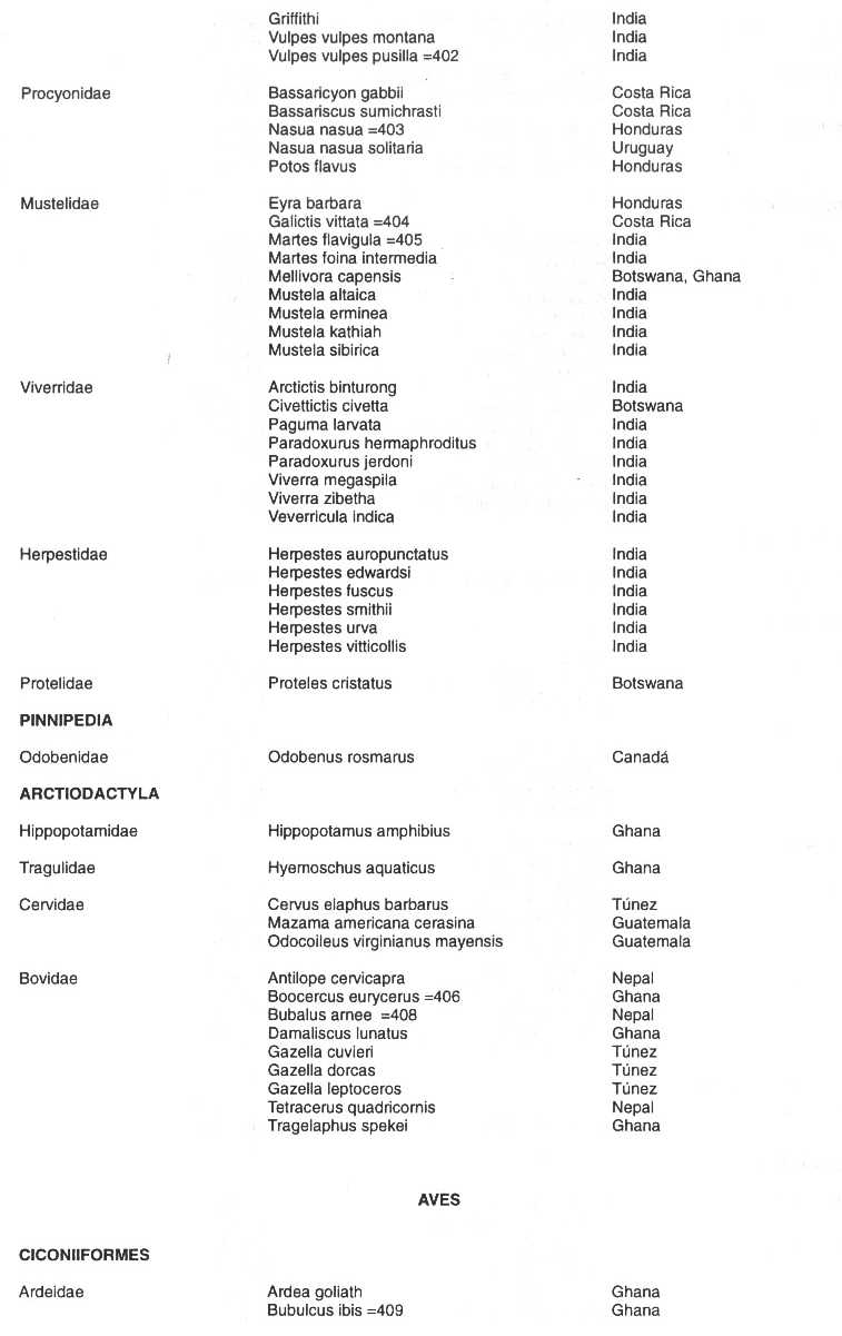 provenientes de esa especie y se indican como sigue para los fines de la
