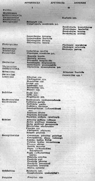 Apéndice I y que esos poblaciones, subespecies o especies están excluidas