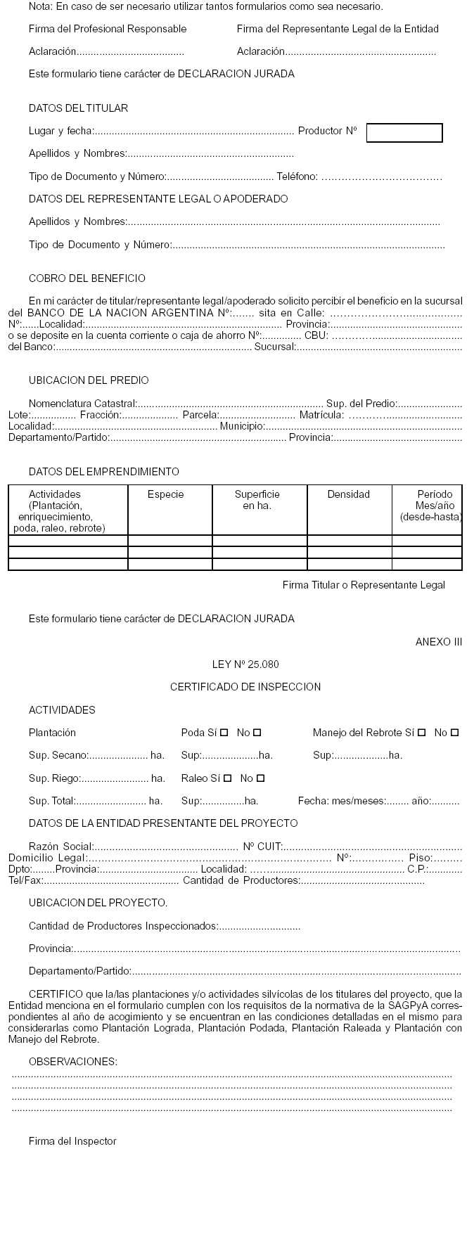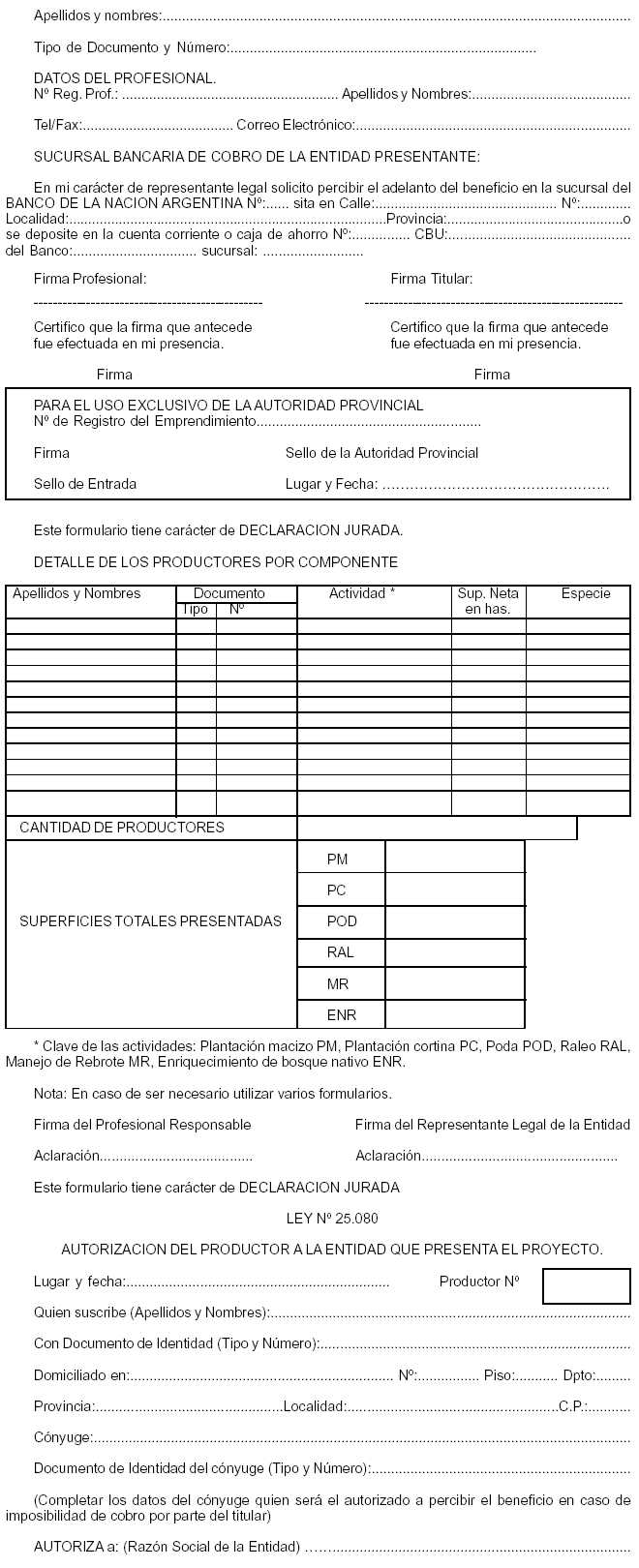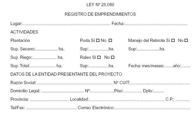 acogimiento a la Ley Nº 25.080 de Inversiones para Bosques