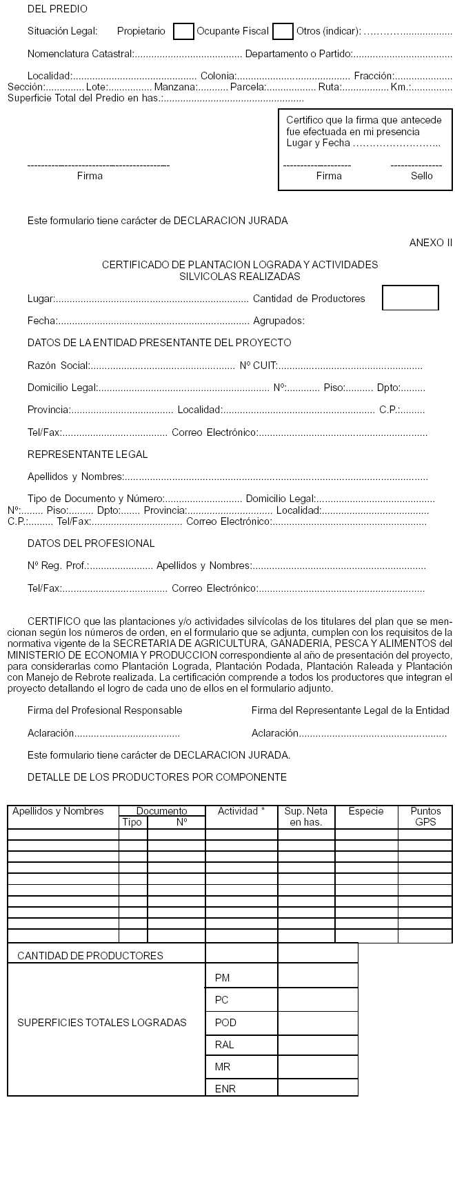 deberá presentar los certificados para cada productor, firmados