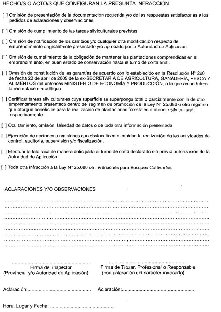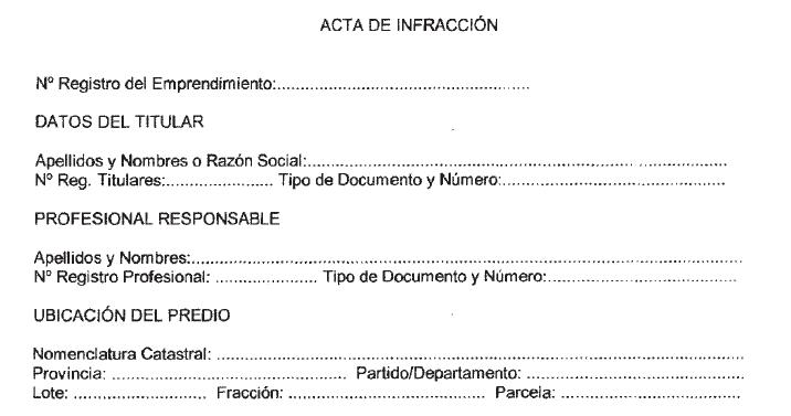 escrito en el Acta de Infracción que se confeccione en dicha