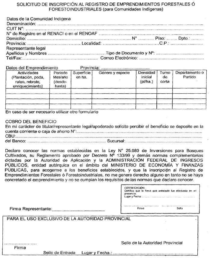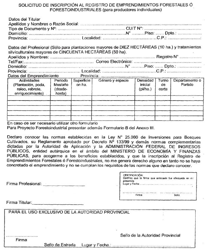 de Emprendimientos Forestales o Forestoindustriales, de