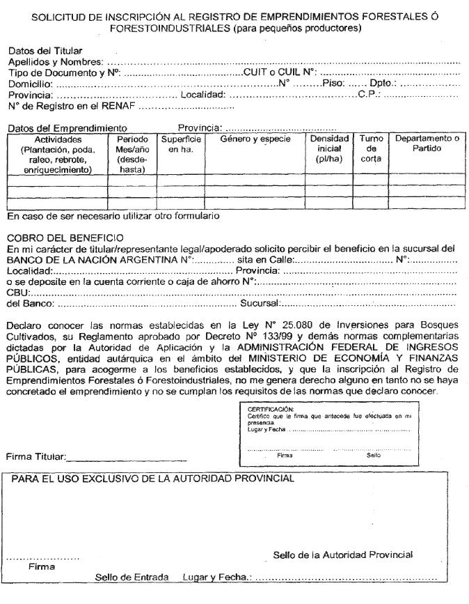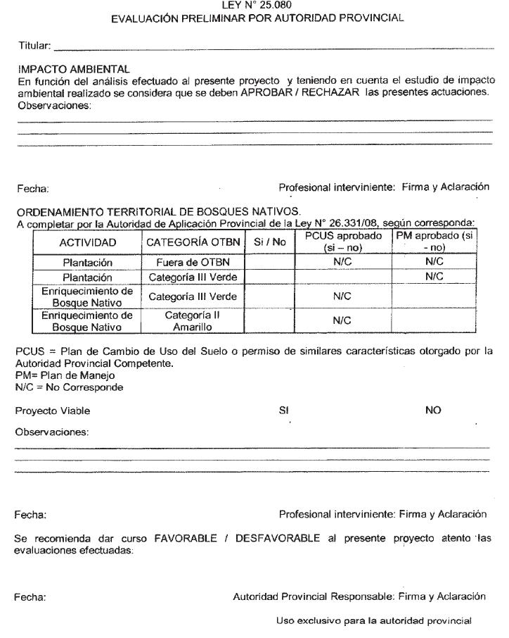 de la Ley Nº 25.080 de Inversiones para Bosques Cultivados.