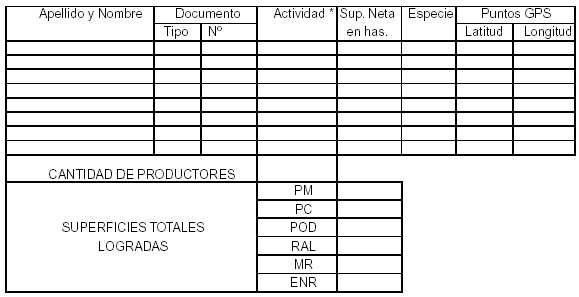 titulares de las plantaciones realizadas en el marco de proyectos de