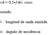 La velocidad teórica, en función de la frecuencia ƒd de la señal