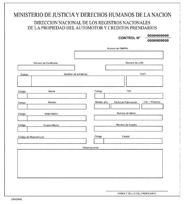 CERTIFICADO DE FABRICACION DEL MOTOVEHICULO