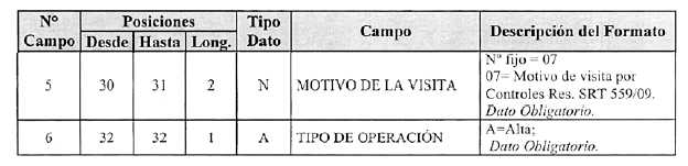 del Anexo II de la Resolución S.R.T. N° 559/09.