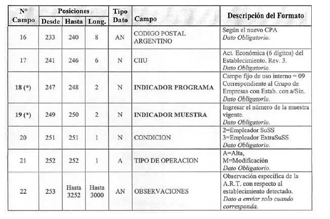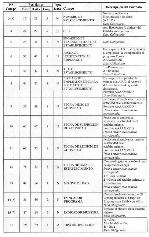 mínima suscripta por el empleador sobre los datos generales del establecimiento.
