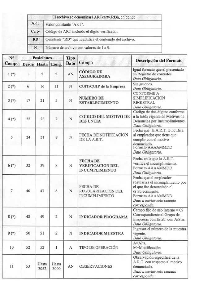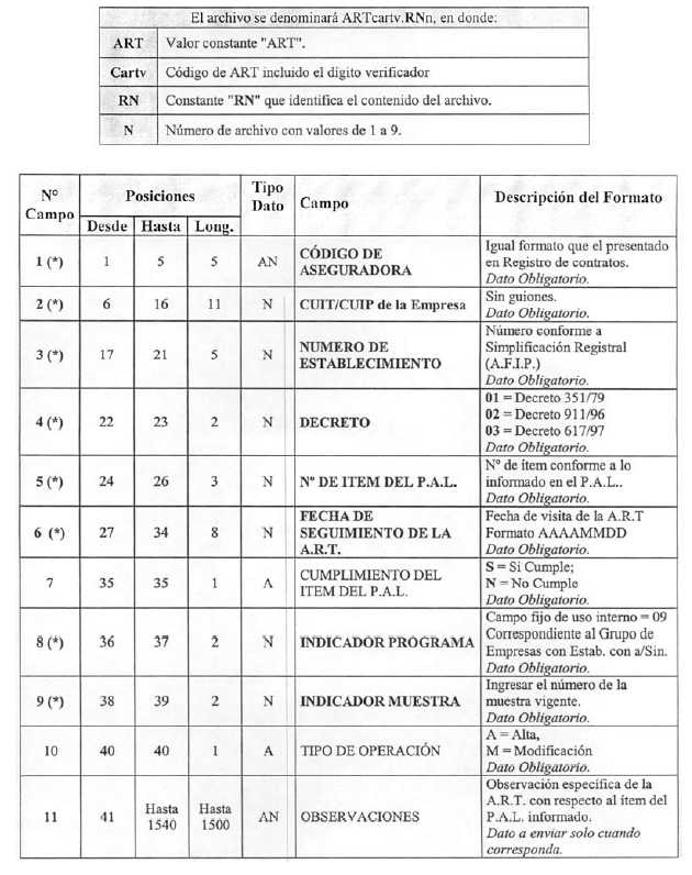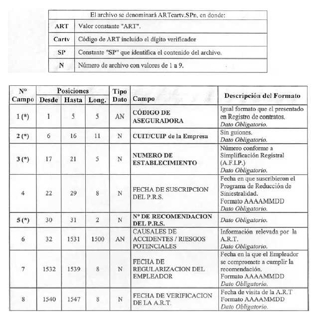 procedimiento para que las A.R.T. remitan a esta S.R.T. la información relativa