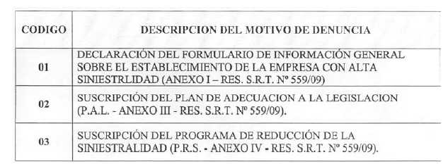 Anexo I de la Resolución S.R.T. N° 559, así como