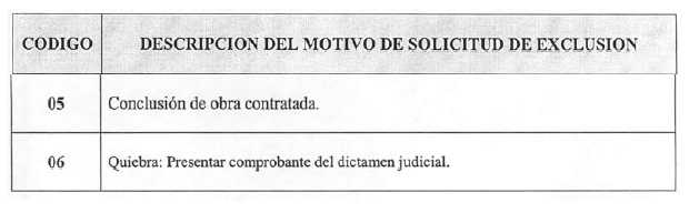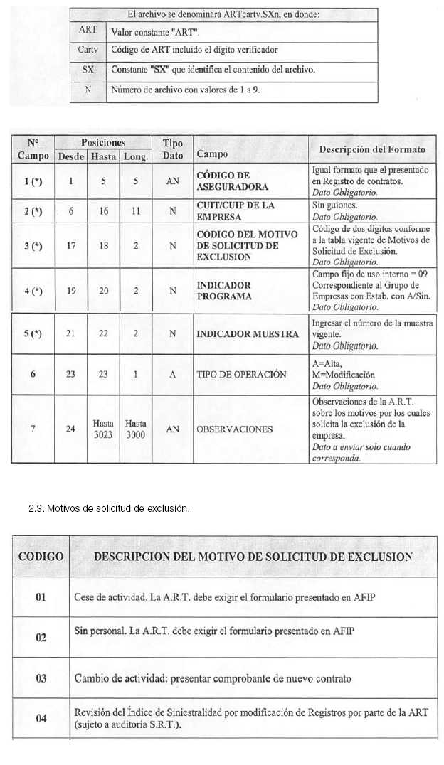ESTRUCTURA DEL REGISTRO DE SOLICITUD DE EXCLUSION