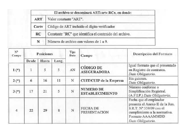 empleador conforme la Resolución S.R.T. Nº 559/09, se establece: