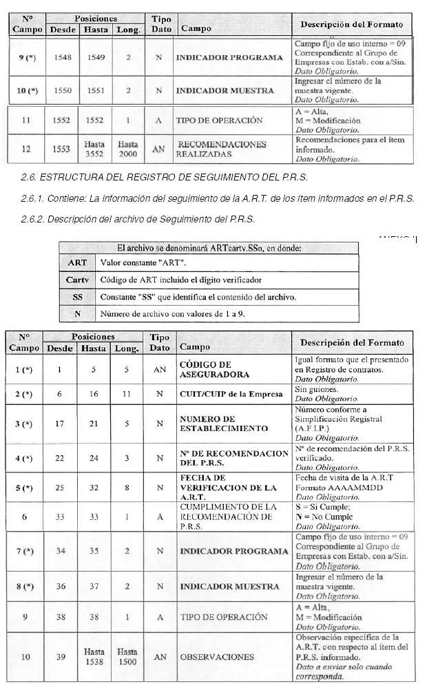 estructuras de datos que se detallan en el Anexo I de la presente disposición.