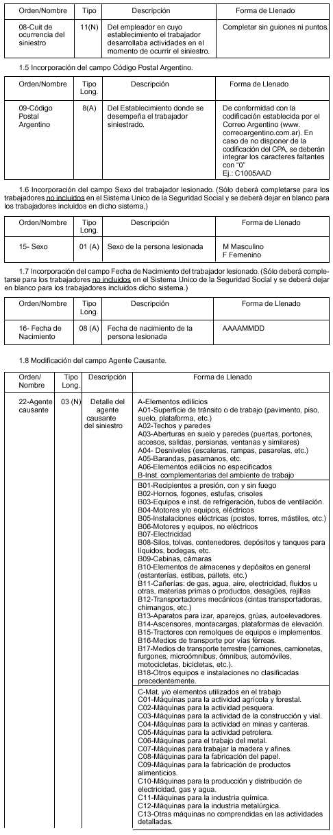 informar datos al registro de Siniestros e Incapacidades Laborales que
