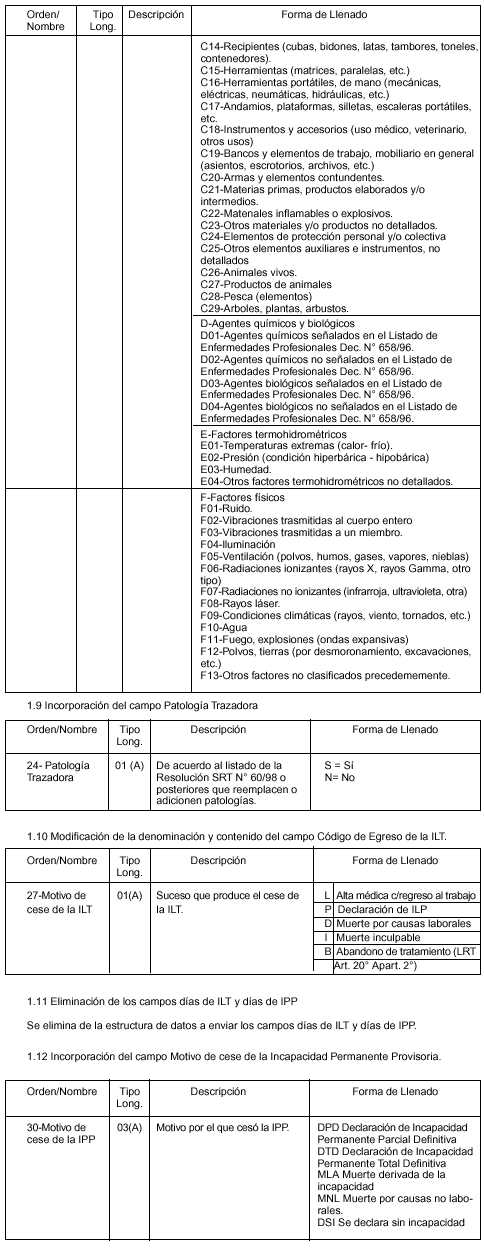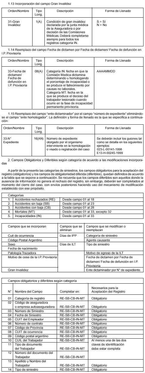 estructura de datos del Registro establecido por la Resolución SRT N° 15/98, de