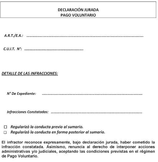Trabajo”. Se aprueba el formulario de “Declaración Jurada pago voluntario”.