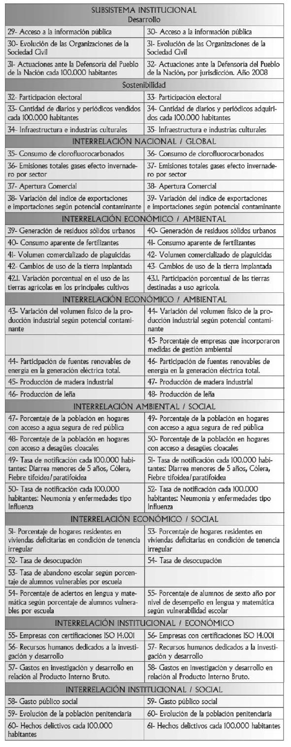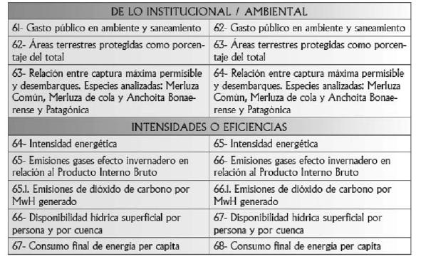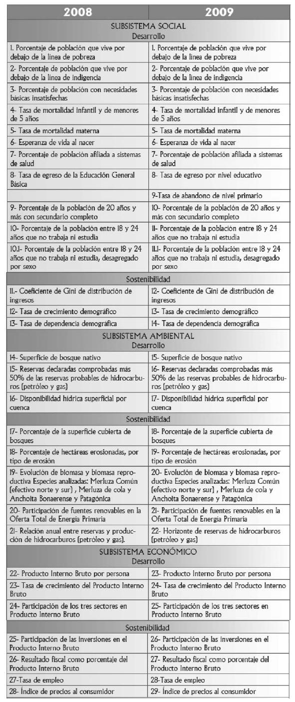 Sistema de Indicadores en general o, respecto de los