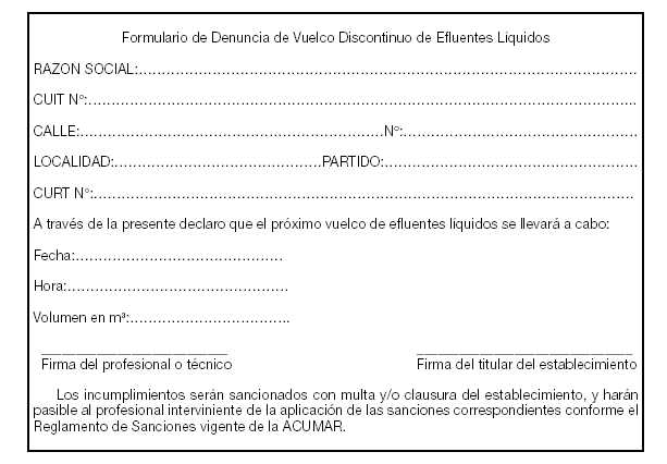 "Formulario de Denuncia de Vuelco Discontinuo de Efluentes