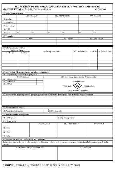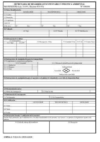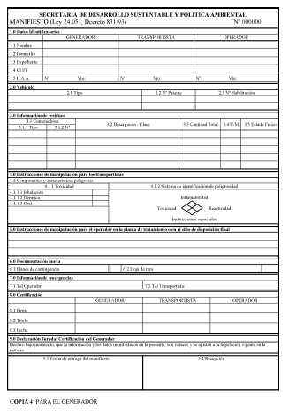 calidad y cantidad de residuos peligrosos generados. 3 – El Manifiesto