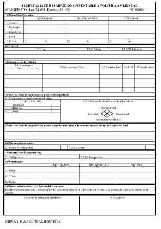 AMBIENTAL, los originales de los Manifiestos de Transporte recibidos en el
