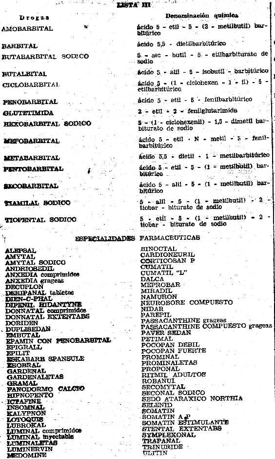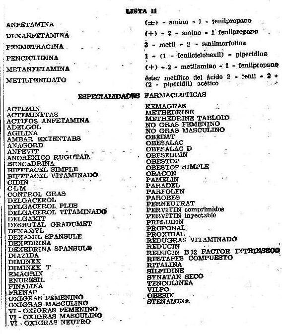 especialidades farmacéuticas incluidas en las Listas anexas I, II, III y