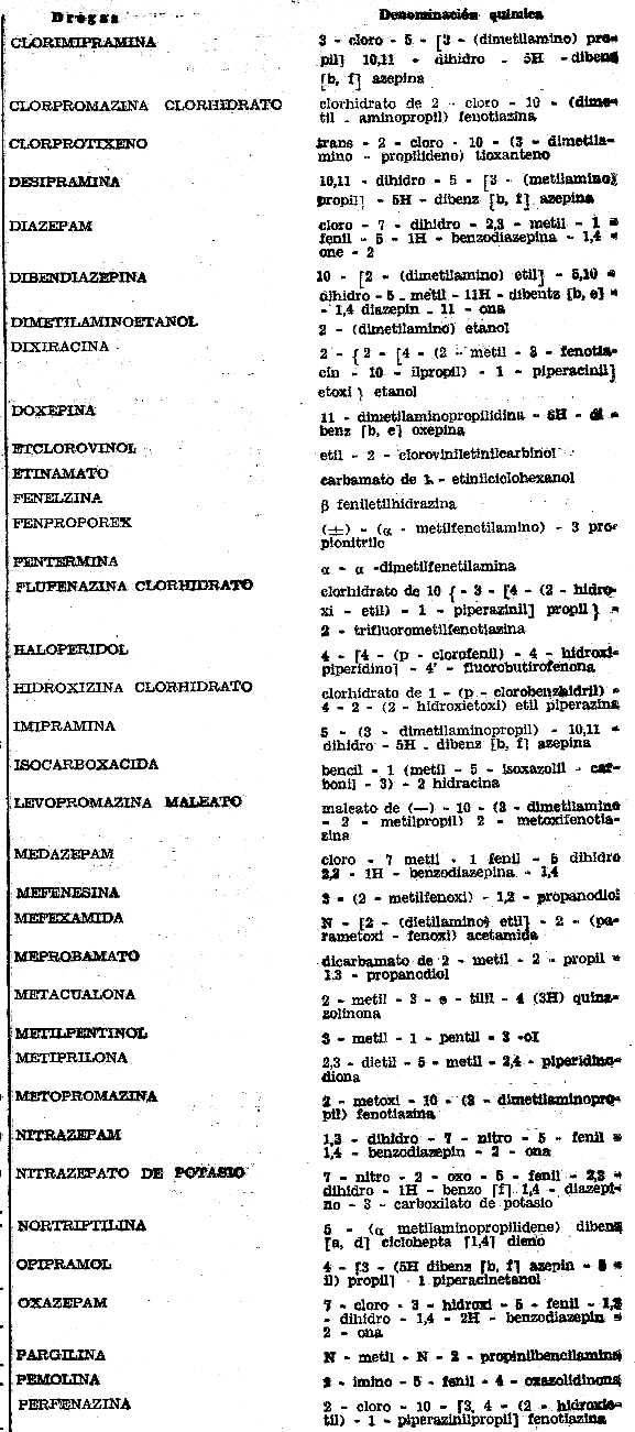 formar con las drogas nominadas.