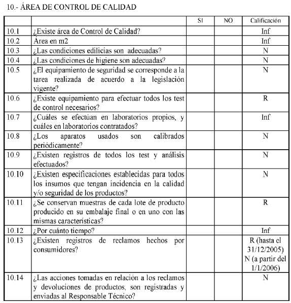 calidad, o seguridad de los productos y la seguridad de los trabajadores