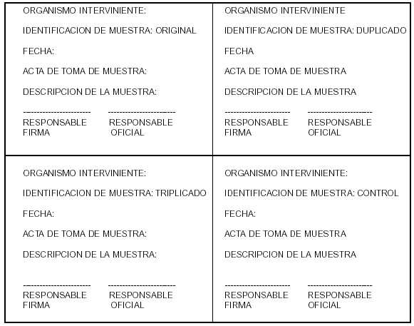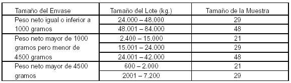 determinación, o de un envase de harina enriquecida o de núcleo vitamínico.
