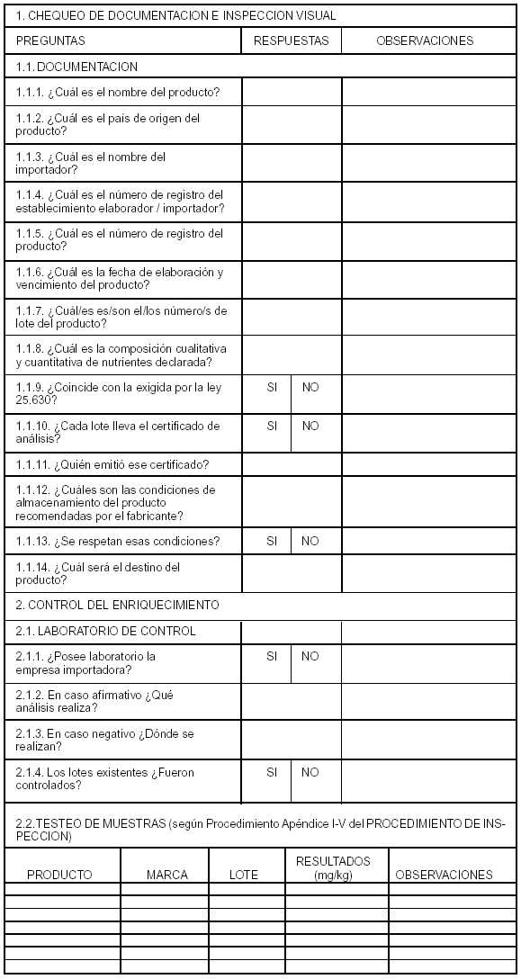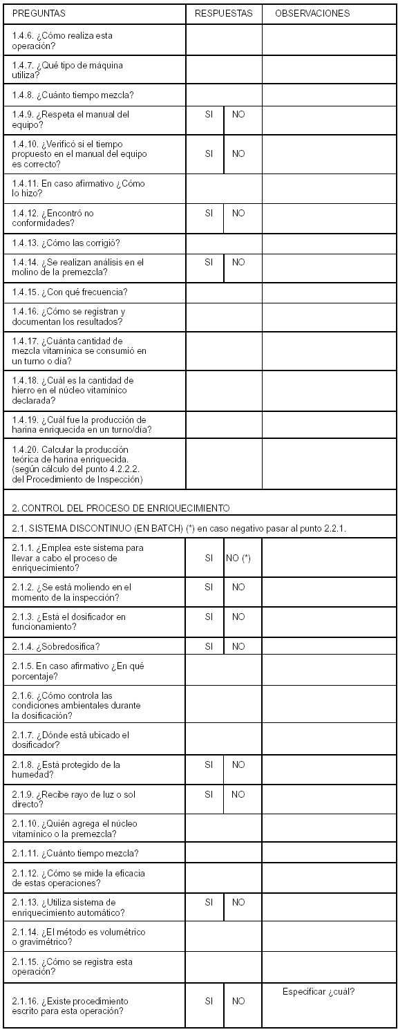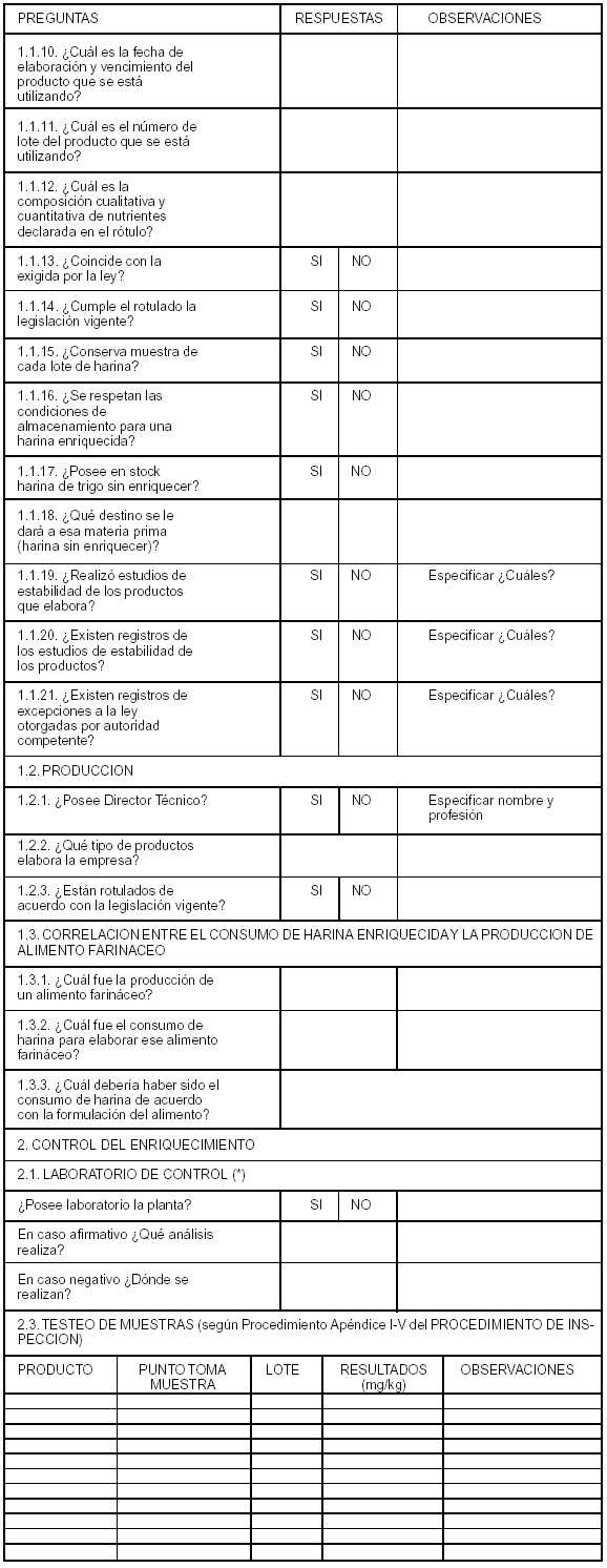 inspecciones destinadas a fiscalizar el enriquecimiento de la harina de