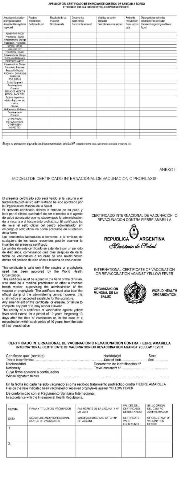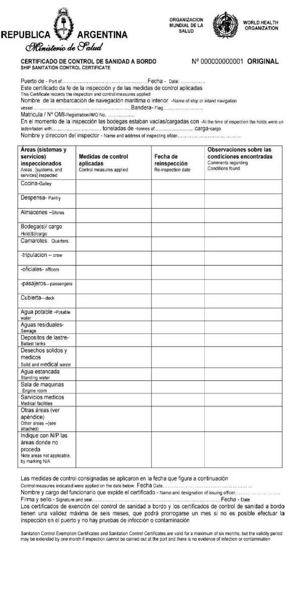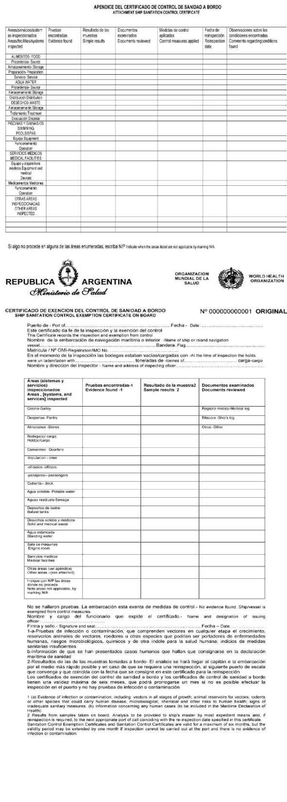 DE CERTIFICADO DE EXENCION DEL CONTROL DE SANIDAD A BORDO/CERTIFICADO DE