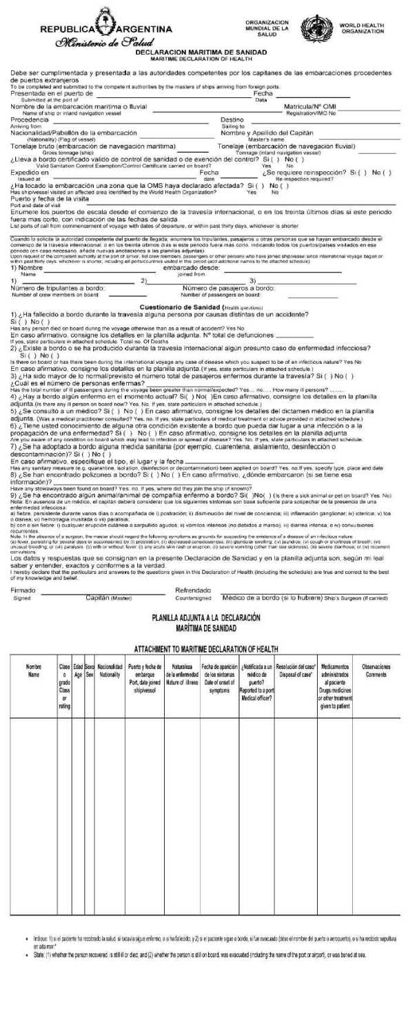 DE DECLARACION MARITIMA DE SANIDAD y la PLANILLA ADJUNTA al MODELO DE