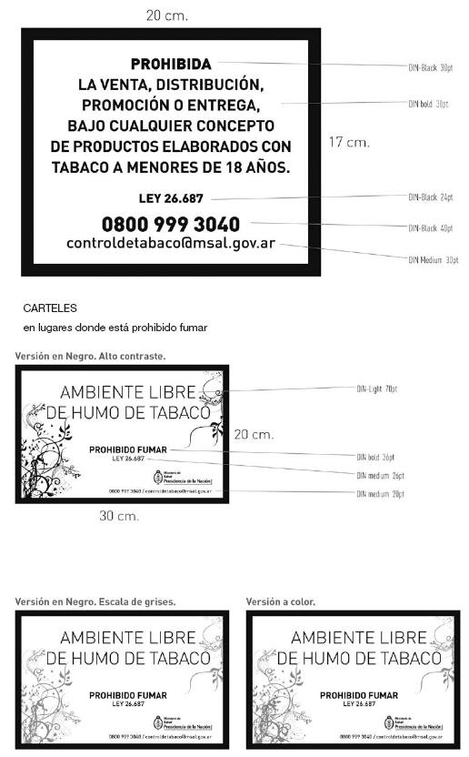 Ley 26.687. 0800 999 3040 controldetabaco@msal.gov.ar” conforme al