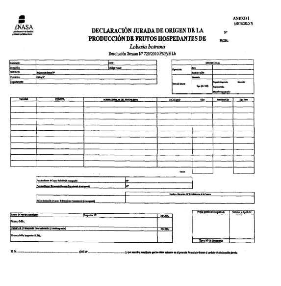 jurada de origen. Se aprueba la Declaración Jurada de Origen de la