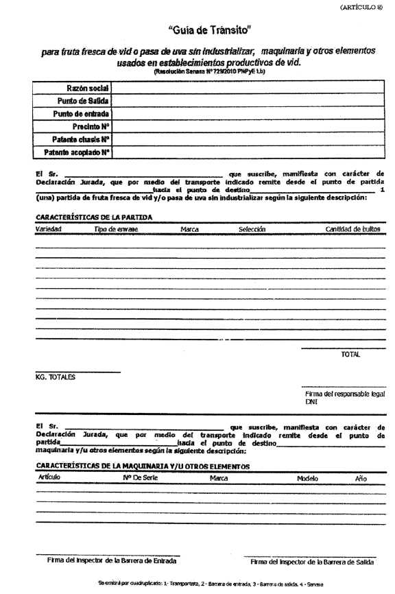 tránsito. Se aprueba la "Guía de Transito" para fruta fresca de vid o